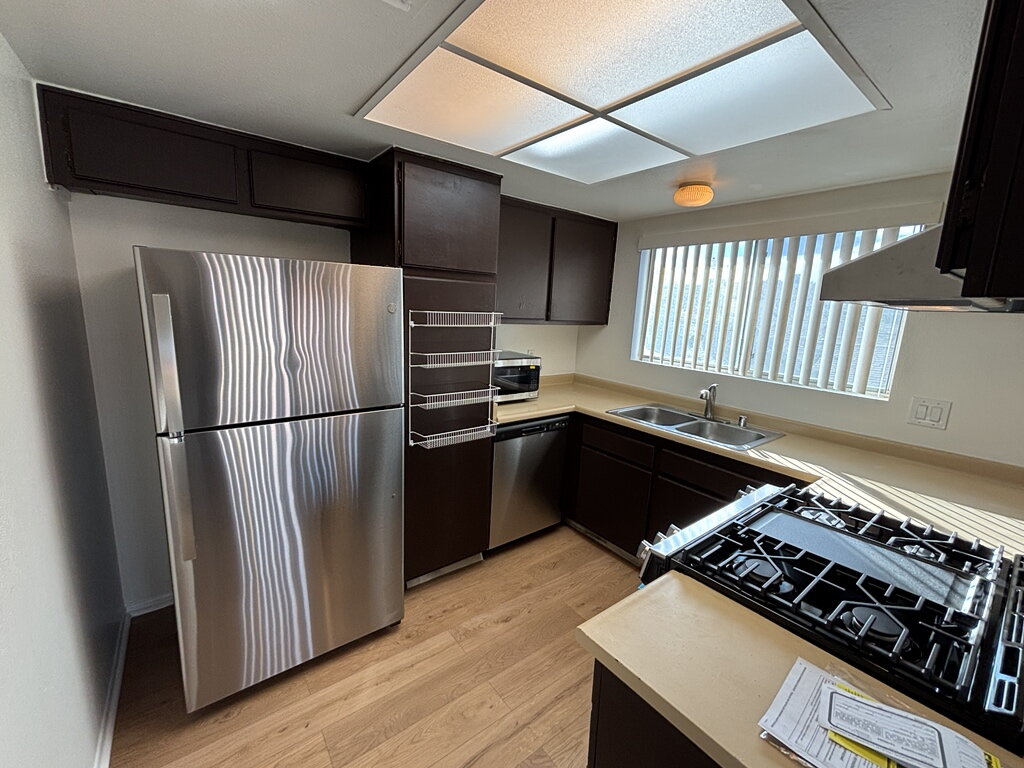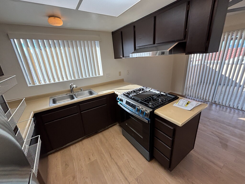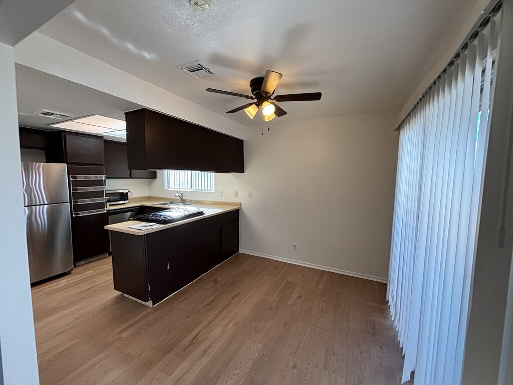 Welcome to this modest and well-maintained upstairs 2-bedroom, 1-bath condo featuring fresh interior paint and brand-new flooring throughout. The kitchen is equipped with brand-new stainless-steel appliances, offering a clean, modern look and everyday functionality. Enjoy indoor-outdoor living with a large private patio, perfect for relaxing or entertaining. The home is located in a community with a pool, ideal for enjoying warm days and social gatherings. Conveniently situated close to shopping, dining, and everyday amenities, this property offers comfort, convenience, and value in a desirable location.