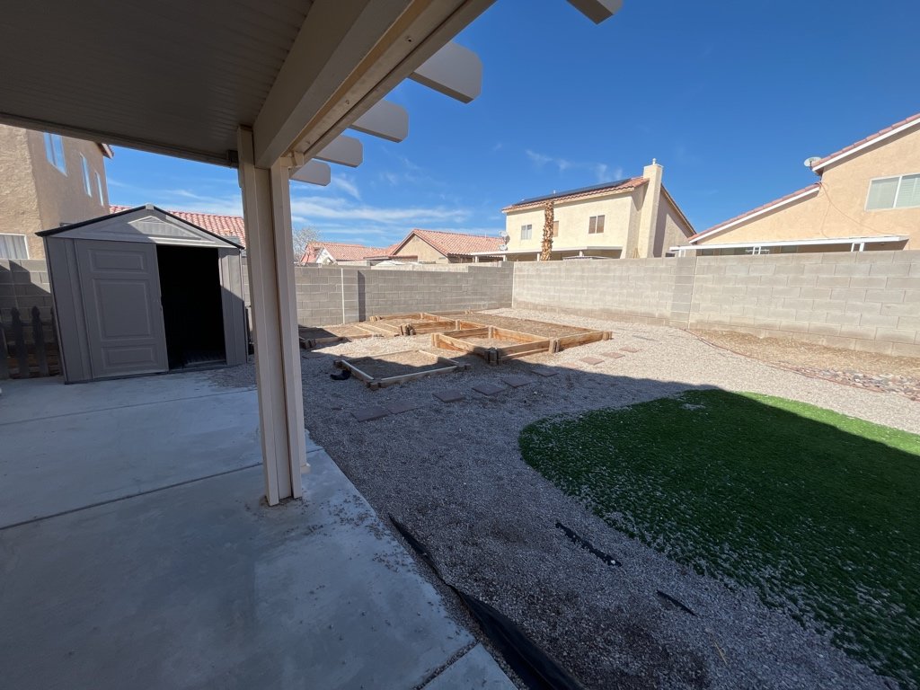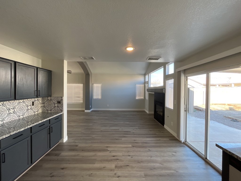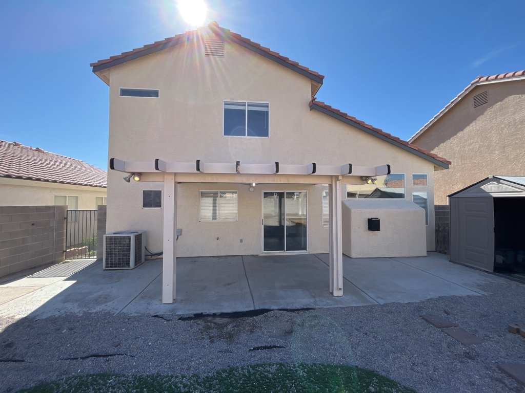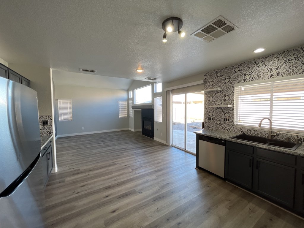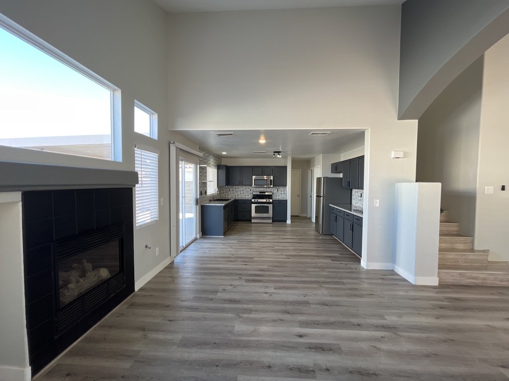 Beautiful modern 2 story home located in N. Las Vegas with open airy floor plan. This home has 3 Bedrooms and 2 1/2 baths. Kitchen features granite counter tops with custom back splash and stainless steel appliances. Spacious walk in pantry with storage shelving. Family room is located just off the kitchen. Home has solar installed keeping your monthly electric bill low. Cathedral ceiling in family room and living room with a cozy gas fireplace great for entertaining. Home has separate laundry area with additional storage space with washer dryer included. Primary bedroom offers spacious walk in closet with ceiling remote controlled ceiling fan, bath features double vanity sinks. Large back yard offers covered patio great for family gatherings with Minatare putting green and flower boxes for gardening. Vinyl flooring through out home with tile in bathrooms. This Gem is a must see!!!