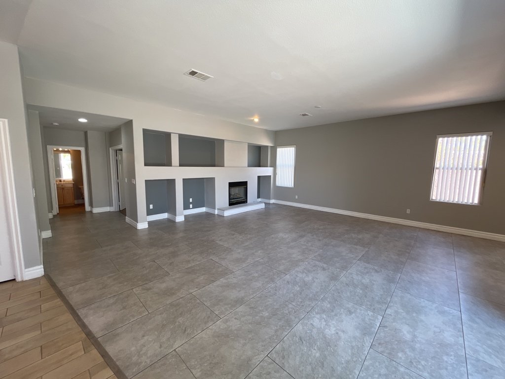 Stunning 2-story, 5-bedroom home in Rhodes Ranch showcases elegant tile and plush carpeting throughout. The spacious open floor plan features a large kitchen island seamlessly connected to the inviting family room with a cozy fireplace, as well as separate formal living and dining rooms—perfect for entertaining. A convenient bedroom and full bath are located downstairs. The expansive master suite offers its own fireplace, an oversized walk-in closet, and a luxurious soaking tub. Every bedroom is equipped with a walk-in closet, providing ample storage. Professionally landscaped grounds complement the home, and residents enjoy access to premier community amenities, including scenic walking paths, a golf course, water park, pool, spa, and more.